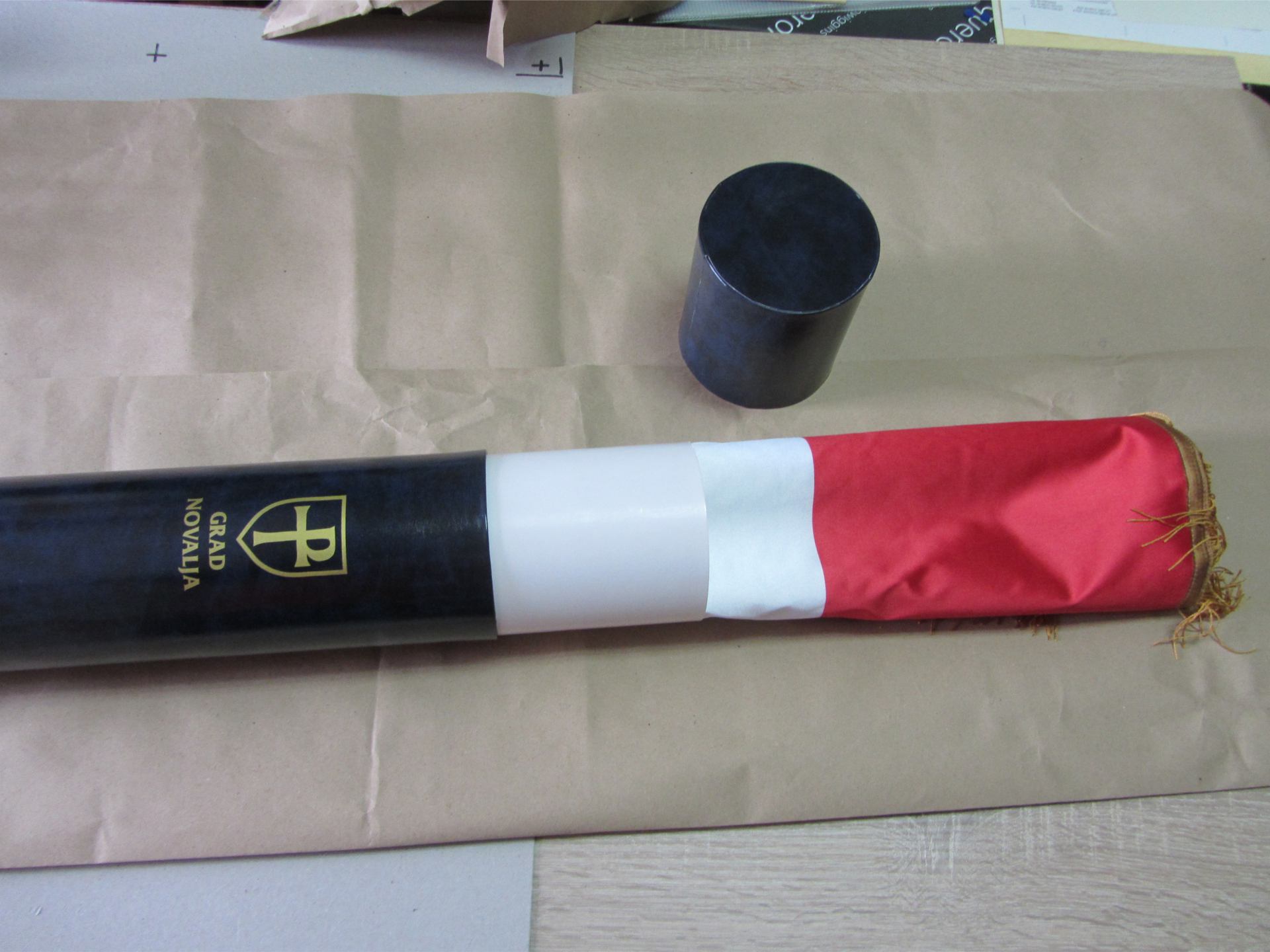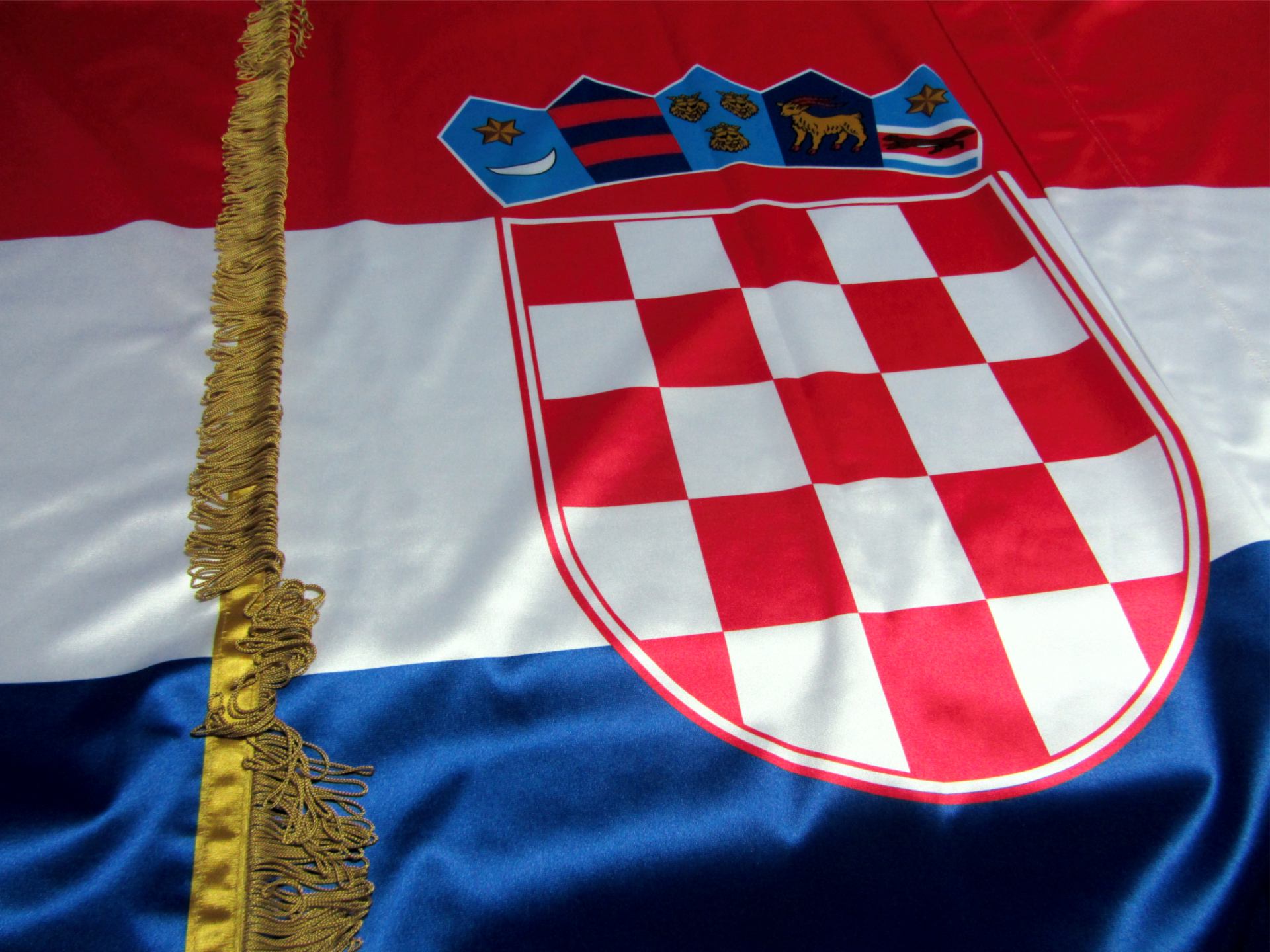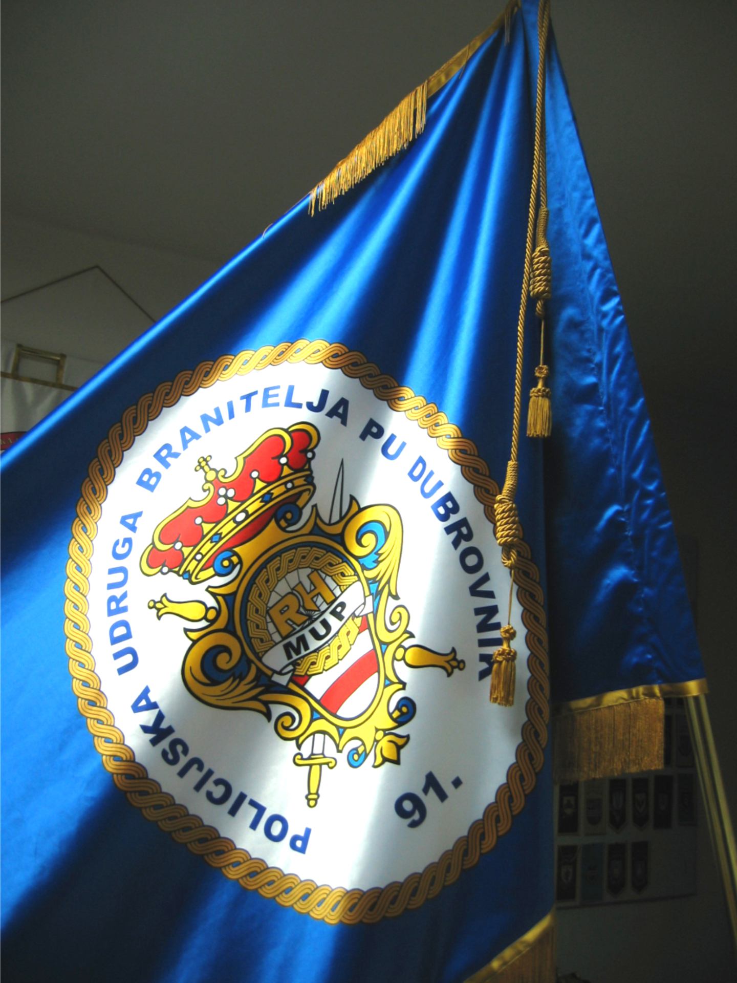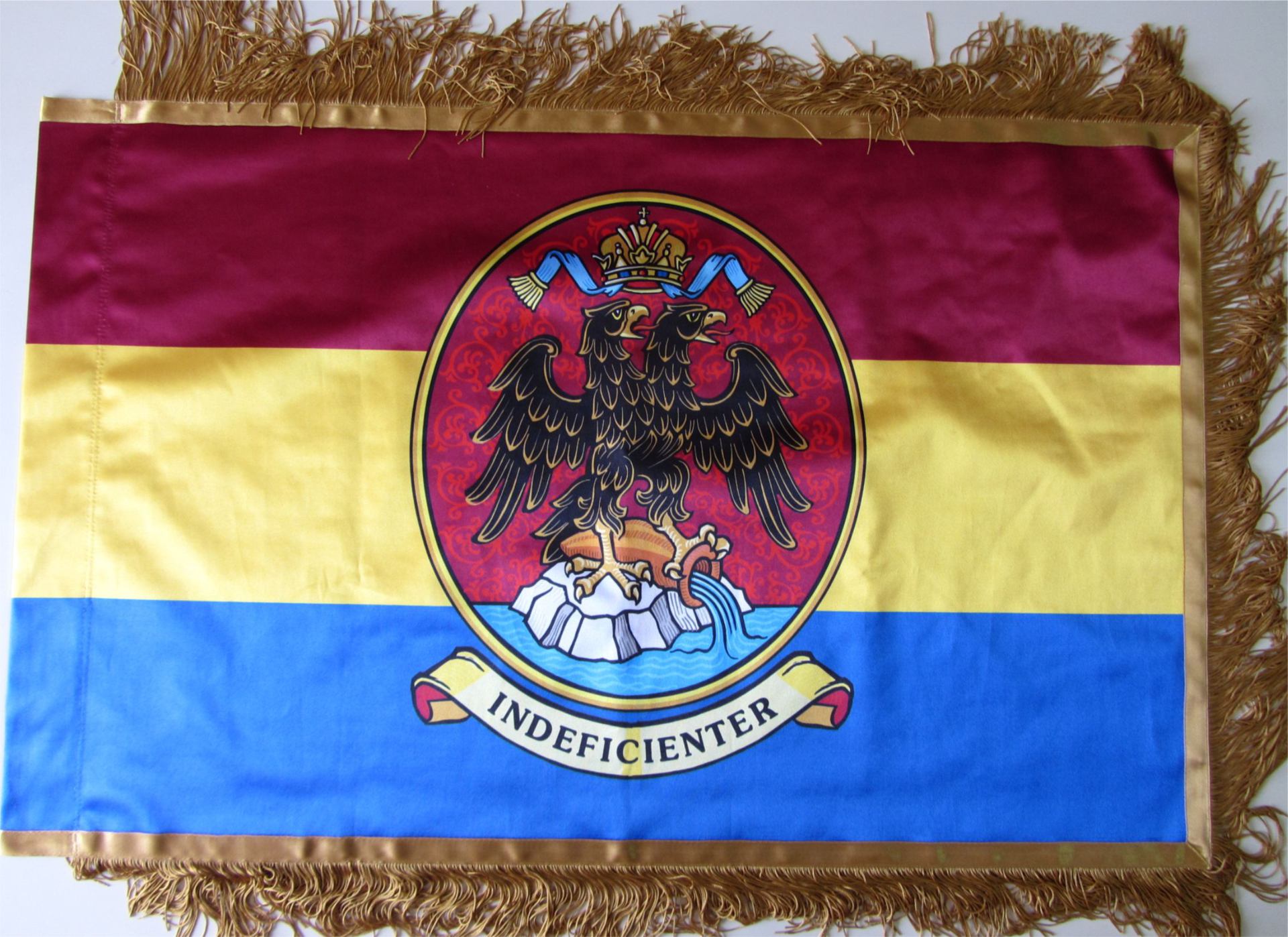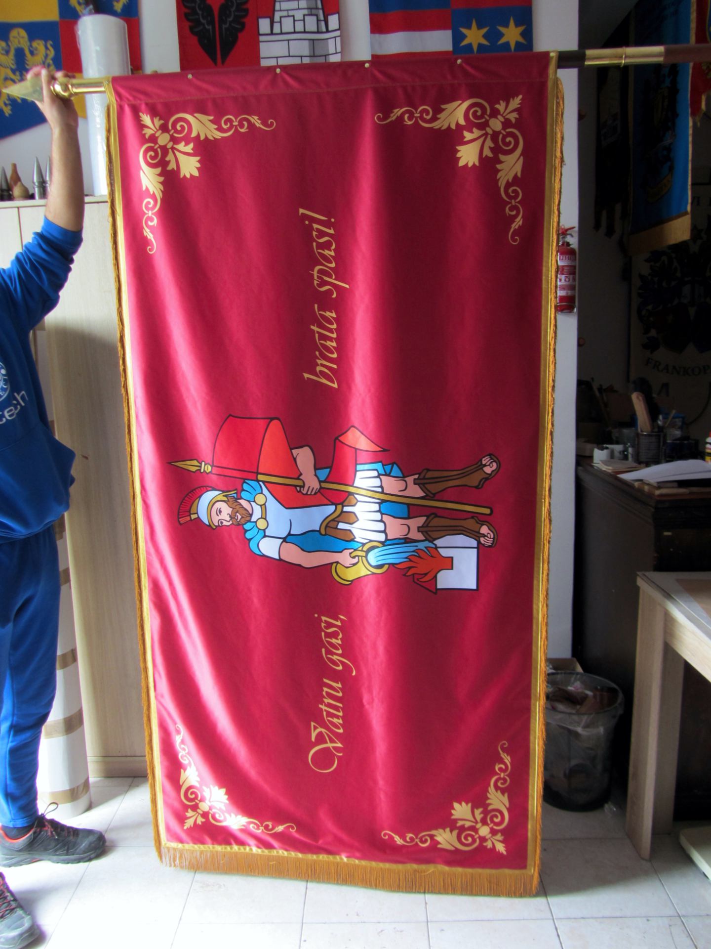 UNUTARNJE ZASTAVE su uglavnom svečane izvedbe, obrubljene resicama u boji starog zlata, plotane na svili, obavezno dvostrane, iznutra zapeglane dodatnim slojem flizelin tkanine.